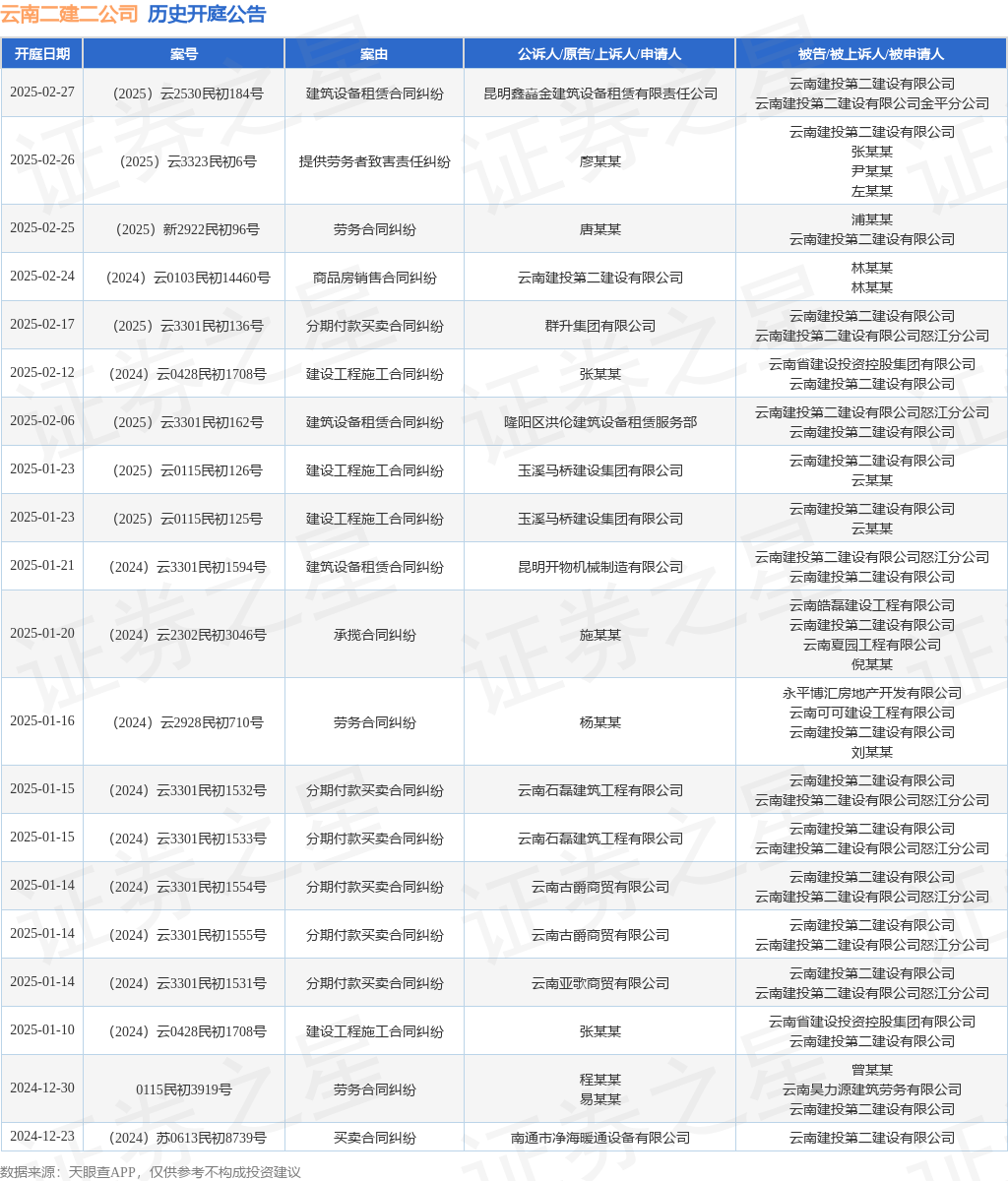 本站消息,根据天眼查APP显示,近日公布了一则云南建投第二建设有限公司作为被告/被上诉人的开庭公告,详细内容如下: